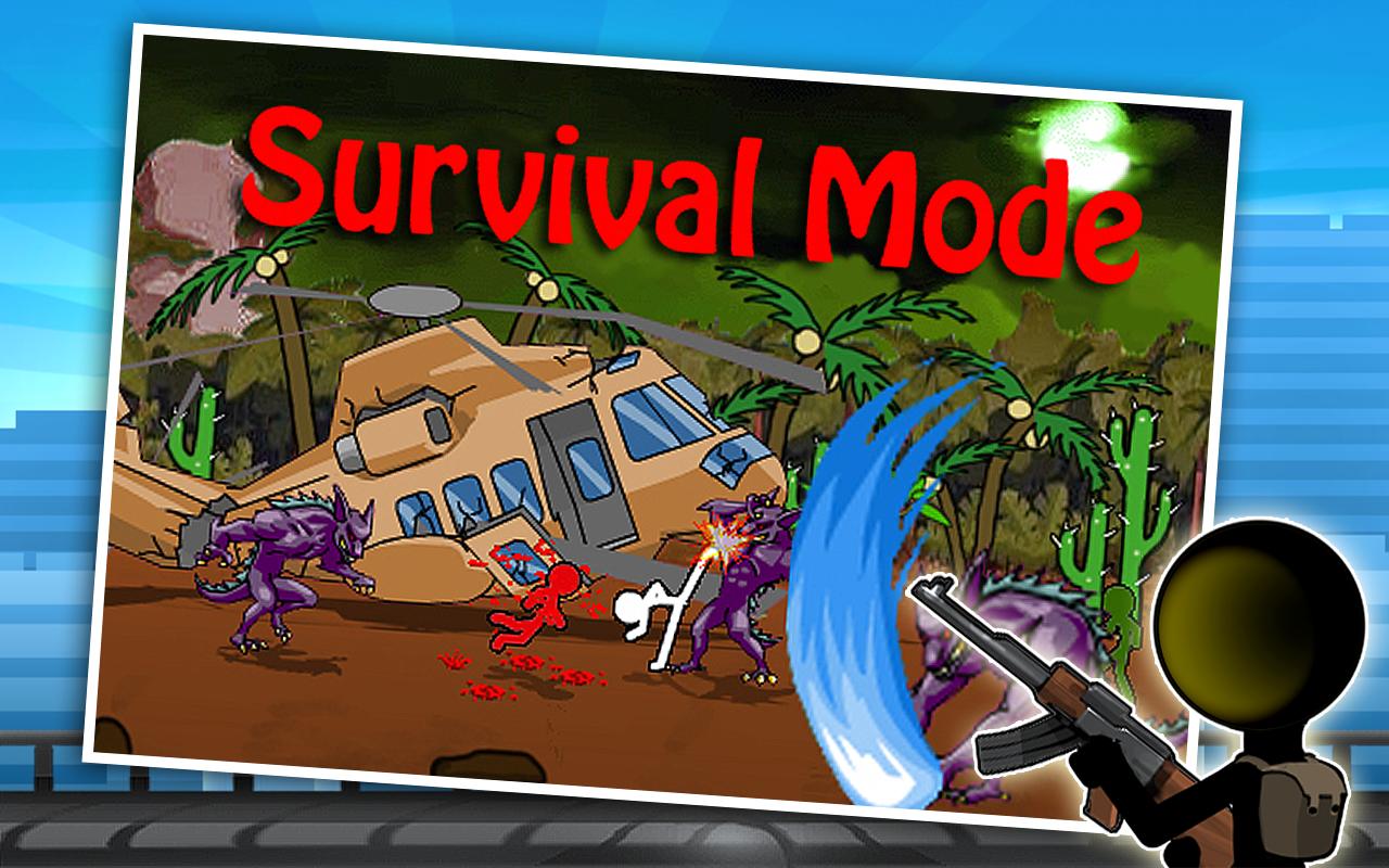 Playing in the role of a stick hero to fight against unknown enemies with a wide array of deadly weapons as well as helicopters and robots. Going into action on Anger of Stick 2 with 3 different game modes: jump jump, survival and doodle runner!